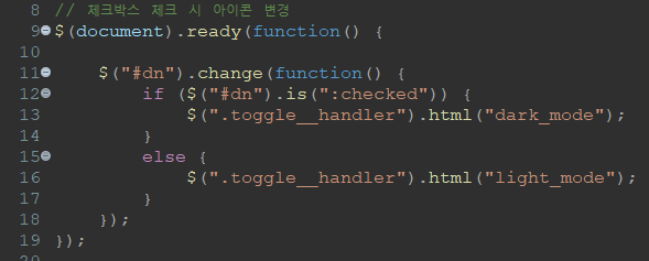 이제 CSS와 토글 체크박스는 완성이 되었다. 자바스크립트만 작성해주면 끝이 난다.